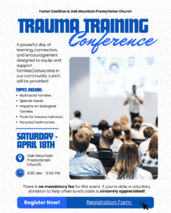 Did you know it takes about 3 years for grandparents to learn how to be parents again? Please consider joining us Sunday evenings to hear from our Foster Coalition team. We’ll be discussing all things surrounding the topic of Grandparents Raising Grandkids with a focus on trauma informed care. Speakers are Paul Berry, founder of Foster Coalition, and his wife Robbie. We’ll have snacks for the adults and childcare with pizza for the kids.